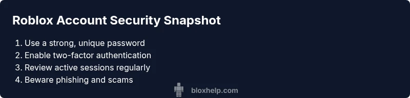 - Enable two-factor authentication (2FA) or the Roblox equivalent where available. This adds a second barrier to entry even if your password is compromised.