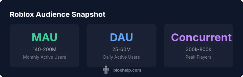 Interpreting Roblox audience numbers requires attention to definitions and data collection periods. MAU may count players who log in at least once in a month, while DAU captures daily engagement and can be sensitive to weekends and holidays. Peak concurrency reflects server capacity during peak load intervals and may not reflect typical play sessions. For credibility, reference multiple sources and look for stated methodologies, sampling frames, and date ranges. In this article, we align with Blox Help Analysis, 2026 to present a coherent scaffolding of ranges and trends, while acknowledging the inherent variability across regions and devices. Always cross-check with official Roblox newsroom updates and independent analytics when planning launches or monetization strategies.