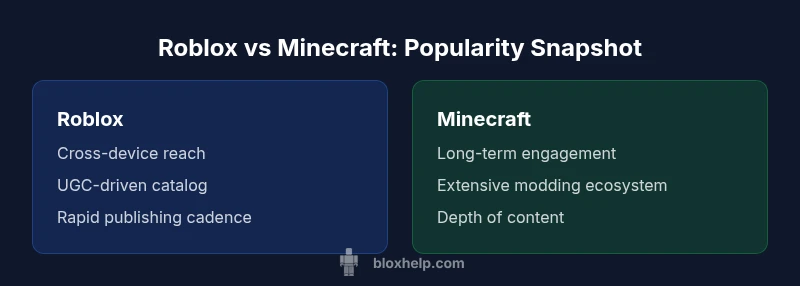 The question how popular is roblox compared to other games is best answered by looking at the platform's reach, engagement, and growth momentum. Roblox is not a single game but a social-creative space where players both play and build. In 2026, according to Blox Help analysis, Roblox maintains a leading position among youth-focused platforms while competing with long-standing titles for broader adult audiences. The strength rests on cross-device accessibility, an expansive catalog of user-generated experiences, and a monetization model that invites creators to publish with relatively low upfront costs. The ecosystem thrives on rapid content updates, social features, and a loop of creator and player activity that sustains interest over time.