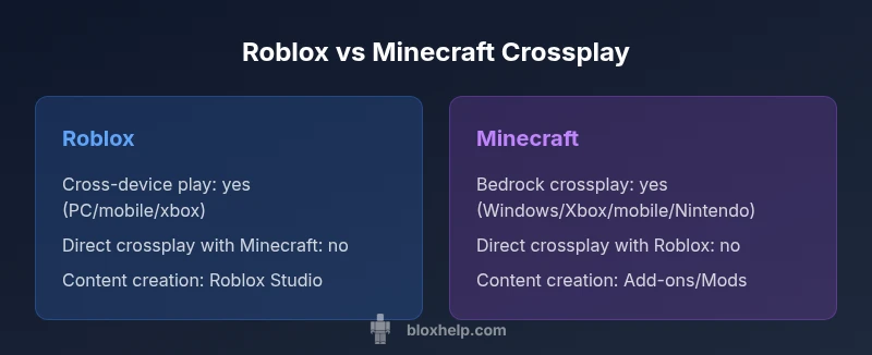 Bottom line: There is no direct crossplay between Roblox and Minecraft. If you must compare, focus on cross-device play within each game, content creation tools, and monetization models. Minecraft Bedrock supports crossplay across Windows, Xbox, mobile, and Nintendo, while Roblox offers broad device support for one account across PC, mobile, and consoles. For group play, coordinate sessions across games using social tools like Discord, but expect each game to keep its own ecosystem separate.