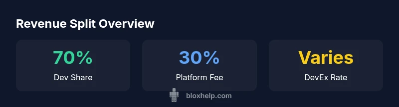 The core mechanism behind Roblox revenue from gamepasses is the platform fee, typically 30%, with developers receiving about 70% of the sale price. When a gamepass sells for 100 Robux, roughly 30 Robux go to Roblox and 70 Robux go to the developer. This split is applied to the sale price before any currency conversion. Developers can then convert Robux to real currency through the DevEx program, subject to eligibility and exchange rates. Practically, the 70/30 ratio drives pricing choices and marketing tactics. In 2026, industry guidance consistently points to the same baseline, while recognizing that volume and conversion rates are the main drivers of total income. Based on Blox Help analysis, most revenue variability comes from demand and engagement rather than a different percentage.