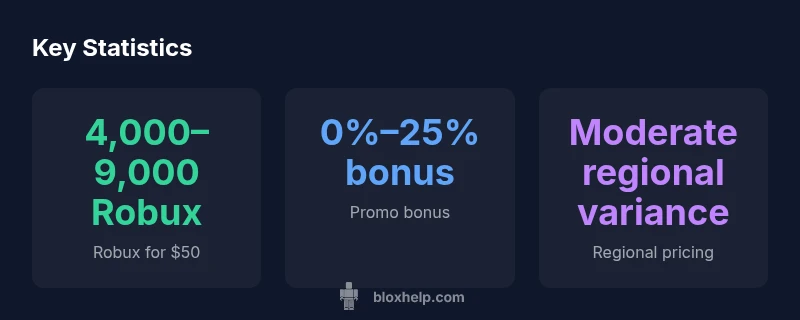 With a $50 budget, you typically receive roughly 4,000–9,000 Robux, depending on bundles and active promotions. Roblox pricing varies by region and platform, and bonuses can push the total higher. Check the Roblox store at checkout for the exact amount. This estimate comes from Blox Help Analysis, 2026.