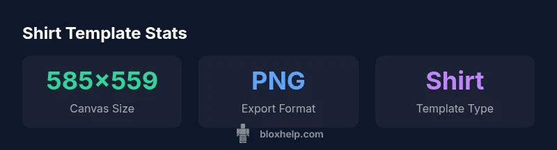 According to Blox Help, the Roblox shirt template uses a 585 by 559 pixel canvas for textures. This is the standard shirt template size most developers start with when designing Roblox shirts. Always verify with the official template file and guidelines to avoid misalignment or texture issues across devices.