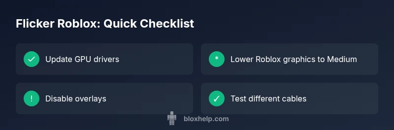 The most likely cause of flicker roblox is a graphics setting mismatch or outdated drivers. Start with verifying Roblox and Windows graphics settings, updating your GPU drivers, and testing in a clean startup to rule out background apps. If the issue persists, proceed through the diagnostic flow below for deeper fixes and safety precautions. This quick path helps you regain steady visuals fast.