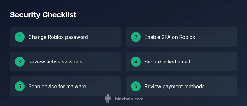 In Roblox security settings, sign out of all devices and review the list of active sessions. Revoke anything unfamiliar and sign back in only from trusted devices.