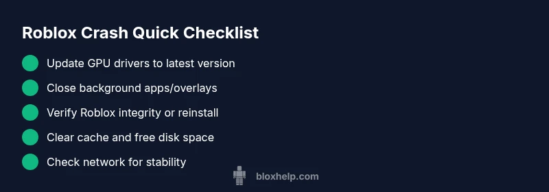 The most likely causes are outdated GPU drivers, insufficient memory, or a corrupted Roblox install. Start with quick fixes: update graphics drivers, close background apps, verify Roblox integrity, and reinstall if needed. If crashes persist, try lowering in-game settings and freeing disk space. Also check for conflicting software like overlays or antivirus. Then restart your device to apply changes.