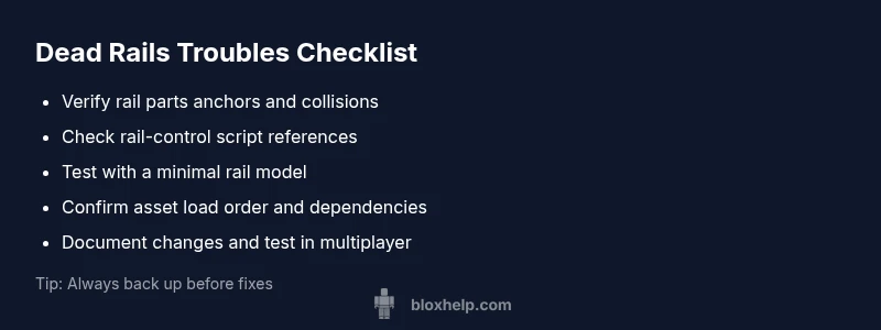 Dead rails are a surprisingly common issue in Roblox games, especially in obstacle courses and rail-based puzzles. According to Blox Help, most cases stem from either a broken rail-control script or misconfigured parts that prevent rail segments from loading or moving at runtime. In a typical scene, a set of rail pieces relies on attached scripts, constraints, or welded joints to coordinate motion. If any single piece is missing, misnamed, or disabled, the entire rail line can appear to freeze or teleport out of place. The result is a frustrating experience for players who expect a smooth, continuous rail ride. The two most frequent culprits are script errors and part configuration. Safety note: always back up your project before making structural changes. This guidance comes from the Blox Help Editorial Team, who analyze Roblox issues across hundreds of games and share practical fixes for beginners through advanced builders.