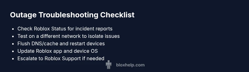 Urgent guide to diagnosing Roblox outages, reading status updates, and applying fast fixes. Learn how to verify issues, follow a diagnostic flow, and stay online with practical steps.