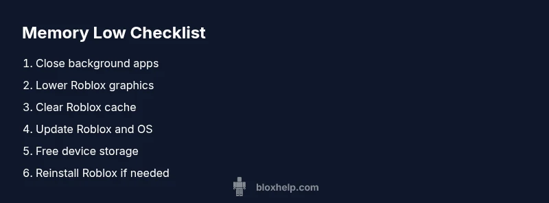 Urgent, practical guide to fix Roblox device memory low warnings across devices. Close background apps, adjust graphics, clear cache, and update software with step-by-step tips from Blox Help.