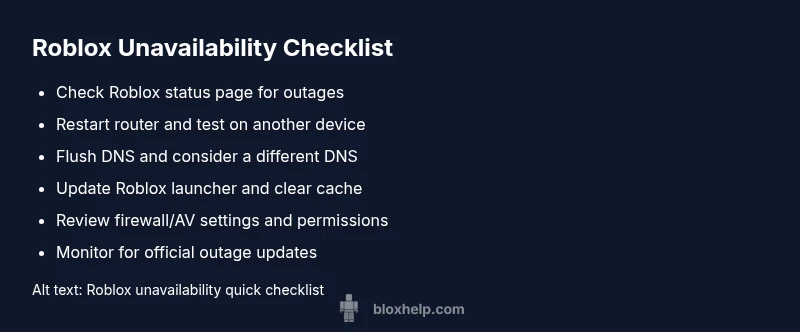 Most often, a Roblox game becomes unavailable due to a service outage, local network problems, or account restrictions. Start by checking Roblox’s status page for outages, verify your internet connection, and ensure you have the correct game permissions. If problems persist, try another device or network to confirm where the issue lies.