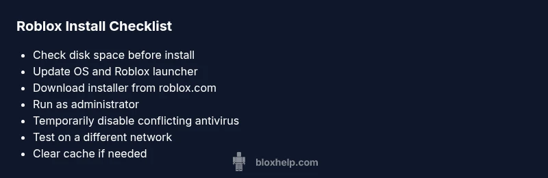 Most Roblox install failures come from a bad installer, blocked permissions, or missing system resources. Quick fix: restart your device, run the installer as administrator, ensure you have enough disk space, and temporarily disable antivirus if safe. If the issue persists, reinstall Roblox from the official site and clear caches. Check network settings and system updates if needed.